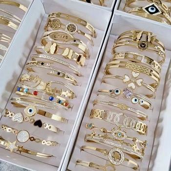 โรงงานขายส่งสแตนเลสชุบทองเพทายดอกไม้ผีเสื้อหัวใจเสน่ห์Pulserasแฟชั่นเครื่องประดับสร้อยข้อมือกําไลข้อมือ